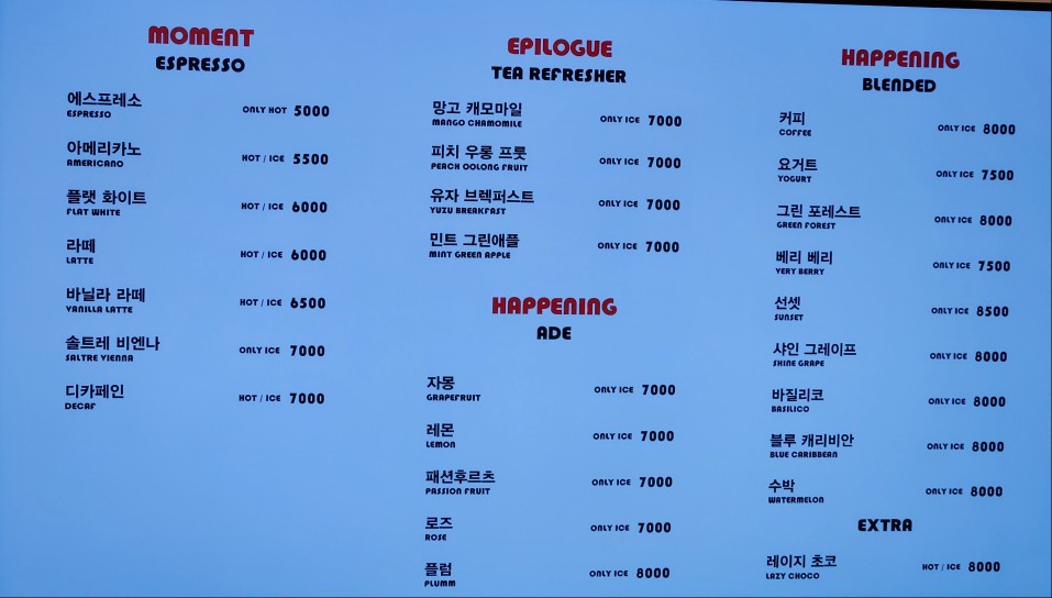 본점은 성수에 있는 것 같아요. 케이크나 굿즈도 굉장히 유명하다고 하는데 식전이라 케이크를 못 먹은 게 참 아쉽네요. 커피도 참 맛나게 먹었는데 아이스 아메리카노와 플랫화이트를 주문해 먹었어요. 산미가 있는 원두를 좋아하는데 산미도 있고 고소함도 있어 잘 블렌딩된 원두를 사용하는 것 같았답니다. 다움이네 가족 입맛에는 합격입니다. 가격은 5,500원 정도면 이쁜 인테리어와 맛있는 커피라 나쁘지 않은 것 같습니다. 차라리 맛없는 것 4,000 원주고 먹을 바에는 5,500원 내고 맛있는 것 먹을래요.